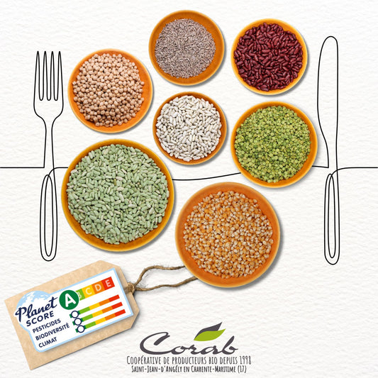 Graines et légumineuses de coopérativeLa Corab, ce sont plus de 180 agriculteurs 100% bio de Nouvelle-Aquitaine, qui cultivent depuis plus de 25 ans des légumineuses et des céréales biologiques. En achetant leurs produits, vous contribuez à protéger les sols et la biodiversité de nos campagnes et vous favorisez l'emploi agricole de nos fermes.